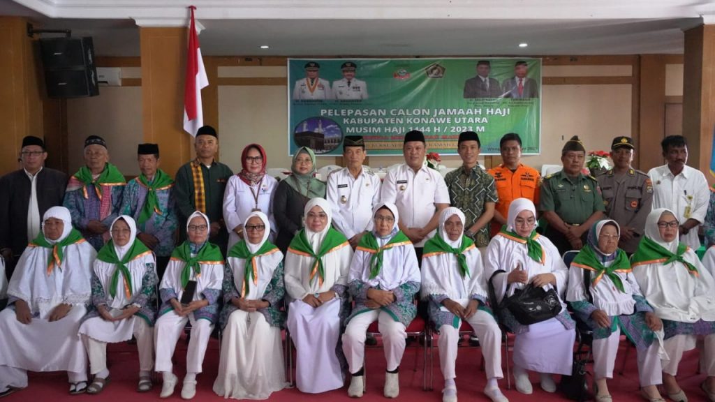 Sebanyak 34 Orang Jamaah Haji asal Kabupaten Konawe Utara, hari ini Rabu (07/06/2023) secara resmi dilepas oleh Bupati Konawe Utara Dr. Ir. H. Ruksamin, ST., M.Si, IPU., ASEAN.Eng, di Aula Anawai Ngguluri Kantor Bupati Konawe Utara.