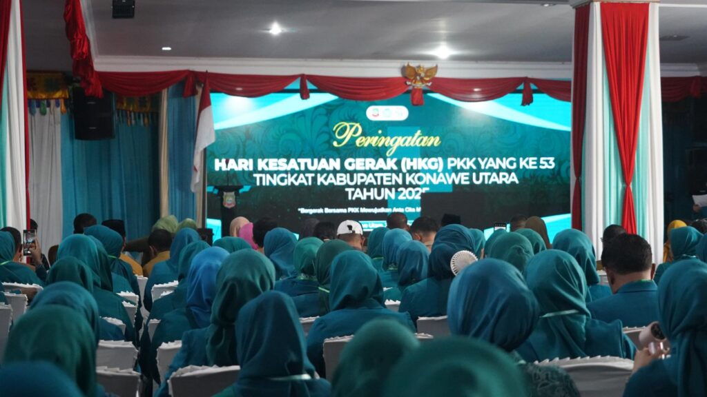 Selasa, 2 Desember 2025. Bertempat di Aula Anawaingguluri Kantor Bupati Konawe Utara, acara yang mengusung tema “Bergerak bersama PKK, Mewujudkan Asta Cita Menuju Indonesia Emas” ini berlangsung dengan khidmat dan meriah.